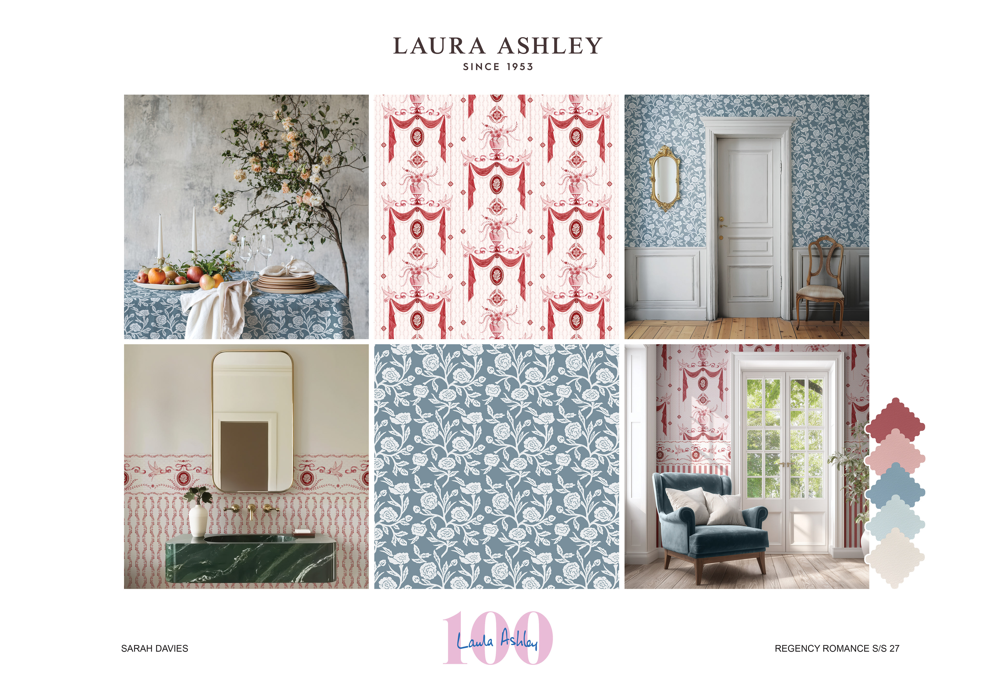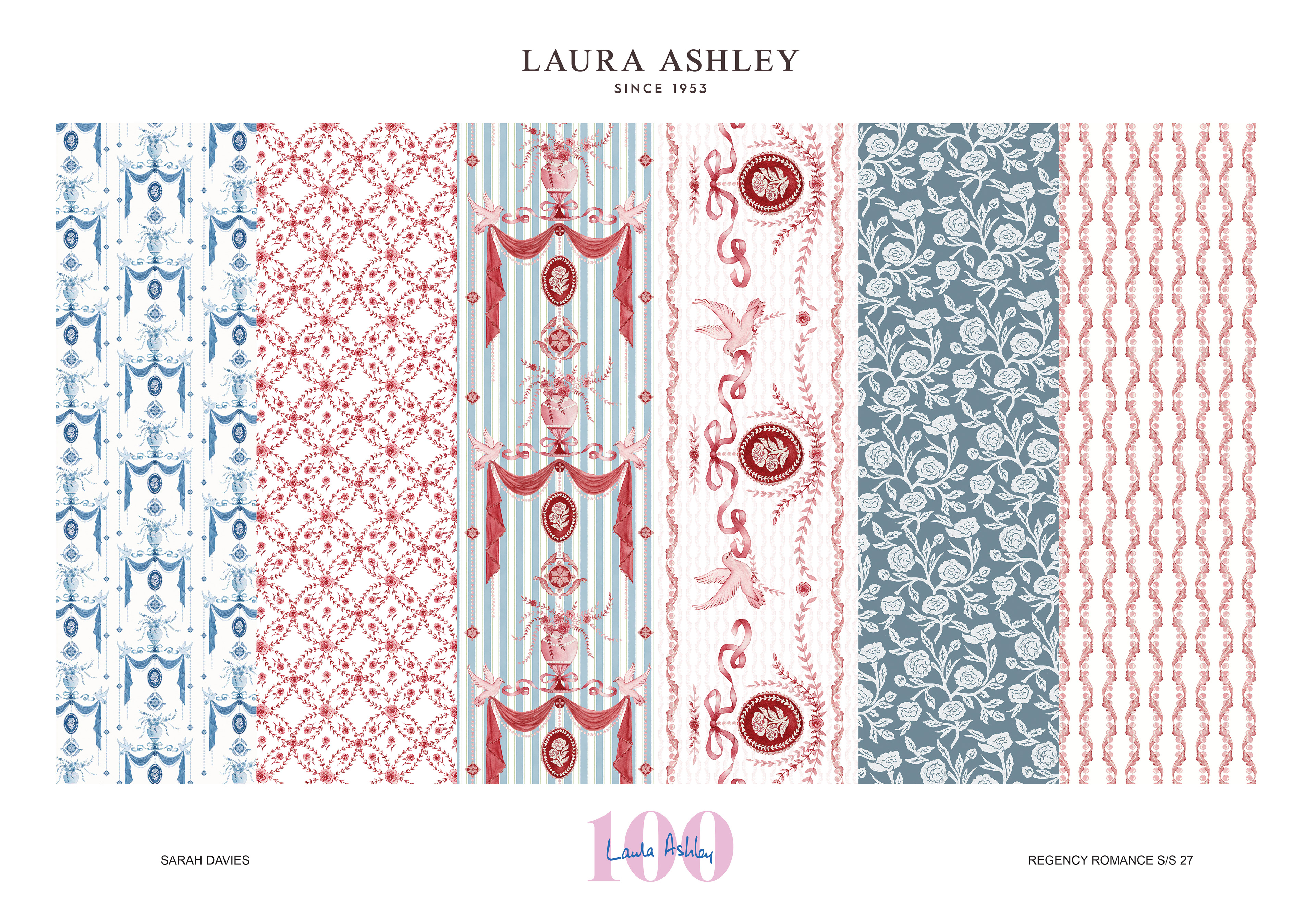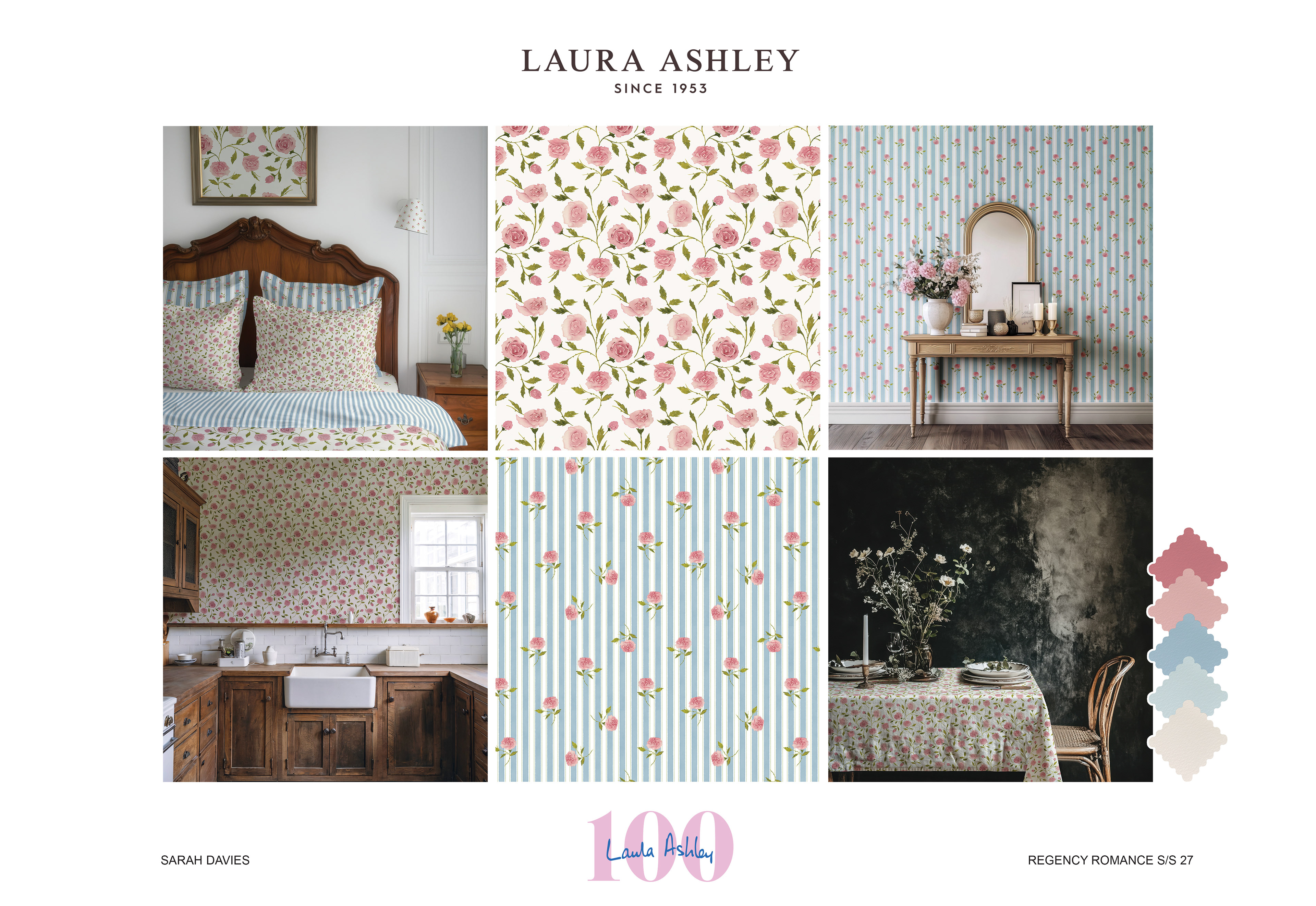 Regency Romance is an interiors and homewares collection developed for a Laura Ashley live brief, inspired by archival designs. During my visit to the archive, I was particularly drawn to small-scale florals and decorative repeats influenced by the Georgian and Regency periods. These timeless styles reflect Laura Ashley’s identity and its long-standing connection to romantic, heritage-inspired interiors.