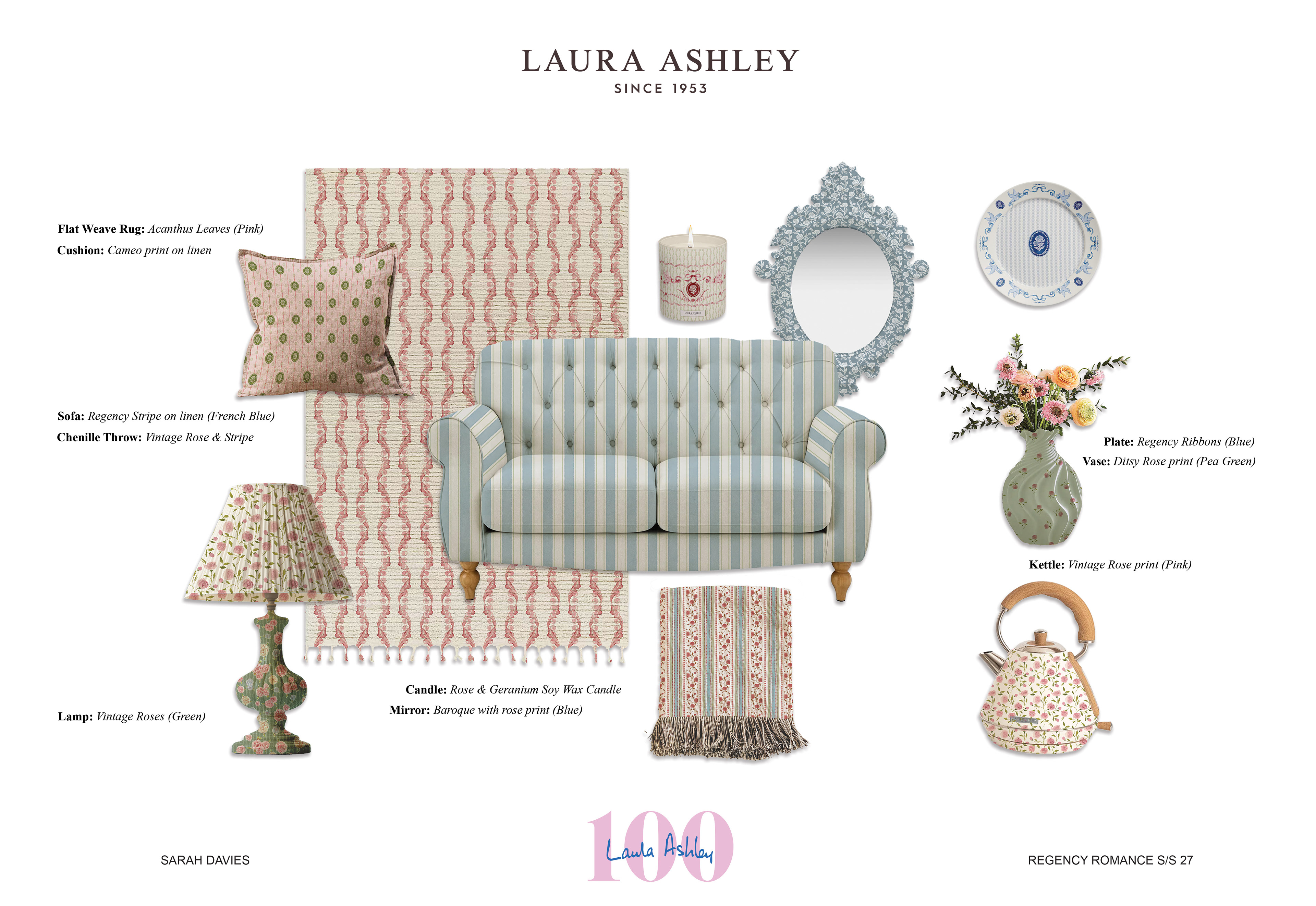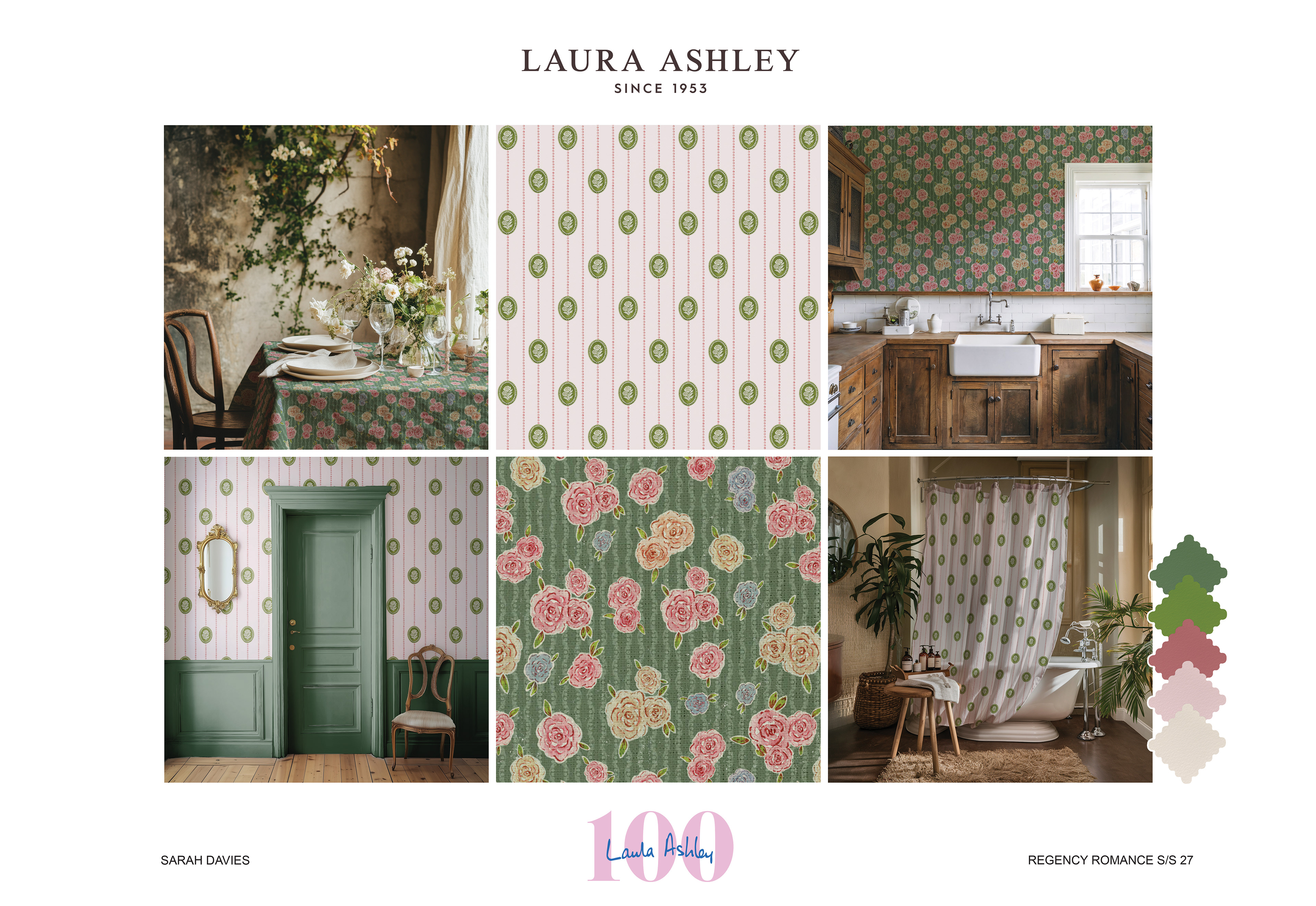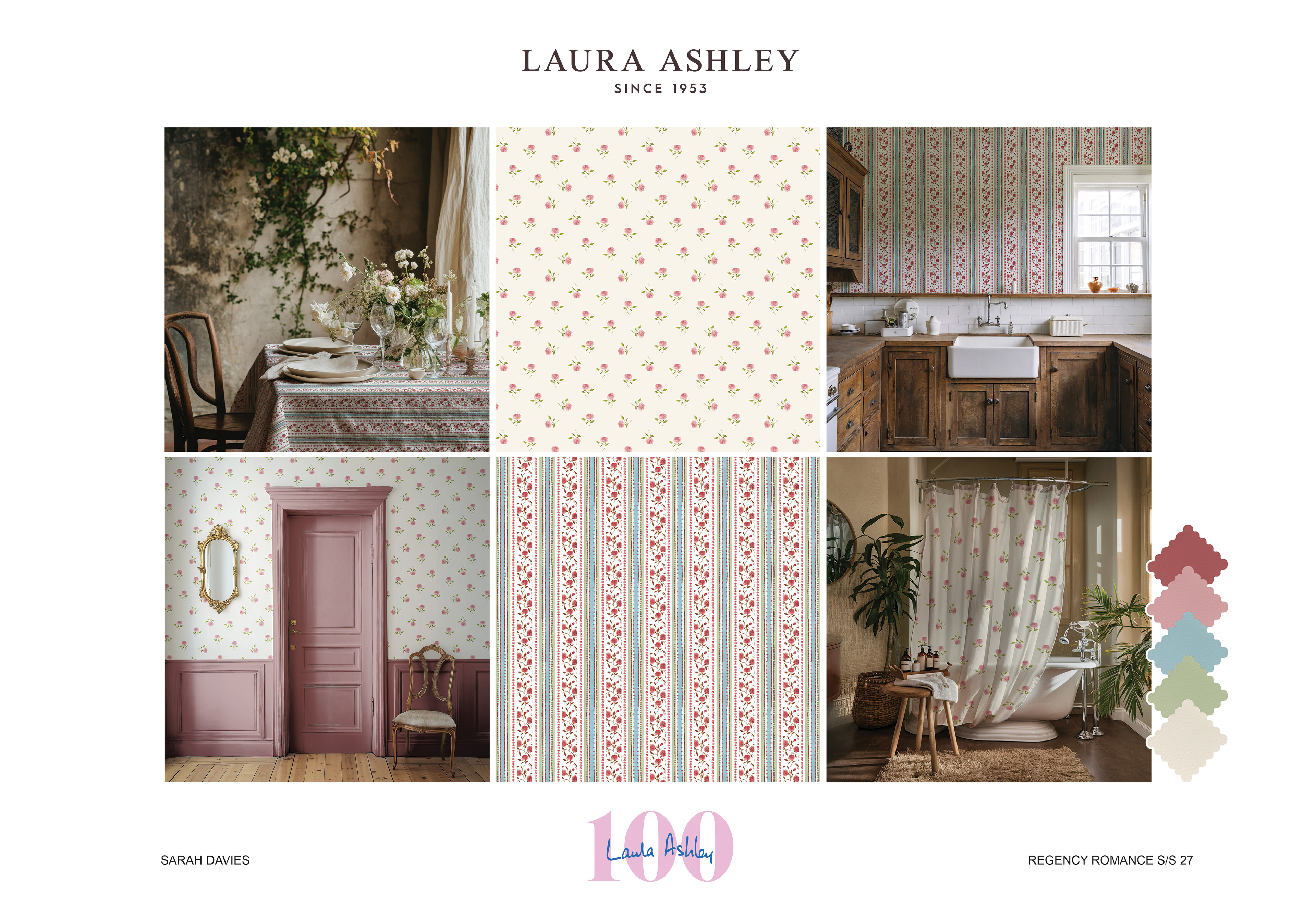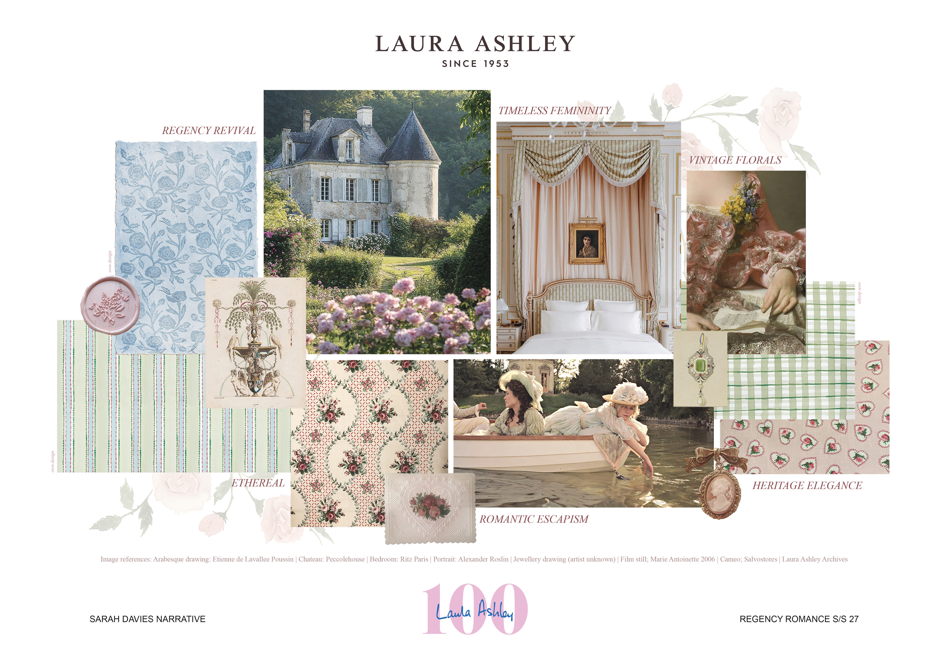 Regency Romance is an interiors and homewares collection developed for a Laura Ashley live brief, inspired by archival designs. During my visit to the archive, I was particularly drawn to small-scale florals and decorative repeats influenced by the Georgian and Regency periods. These timeless styles reflect Laura Ashley’s identity and its long-standing connection to romantic, heritage-inspired interiors.